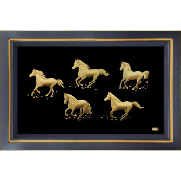 تابلو گله اسب ۵ تایی یکی از آثار باشکوه و پویای مجموعه زرین هنر ایران است که حرکت اسبها را با ترکیبی از انرژی، قدرت و ظرافت به تصویر میکشد.